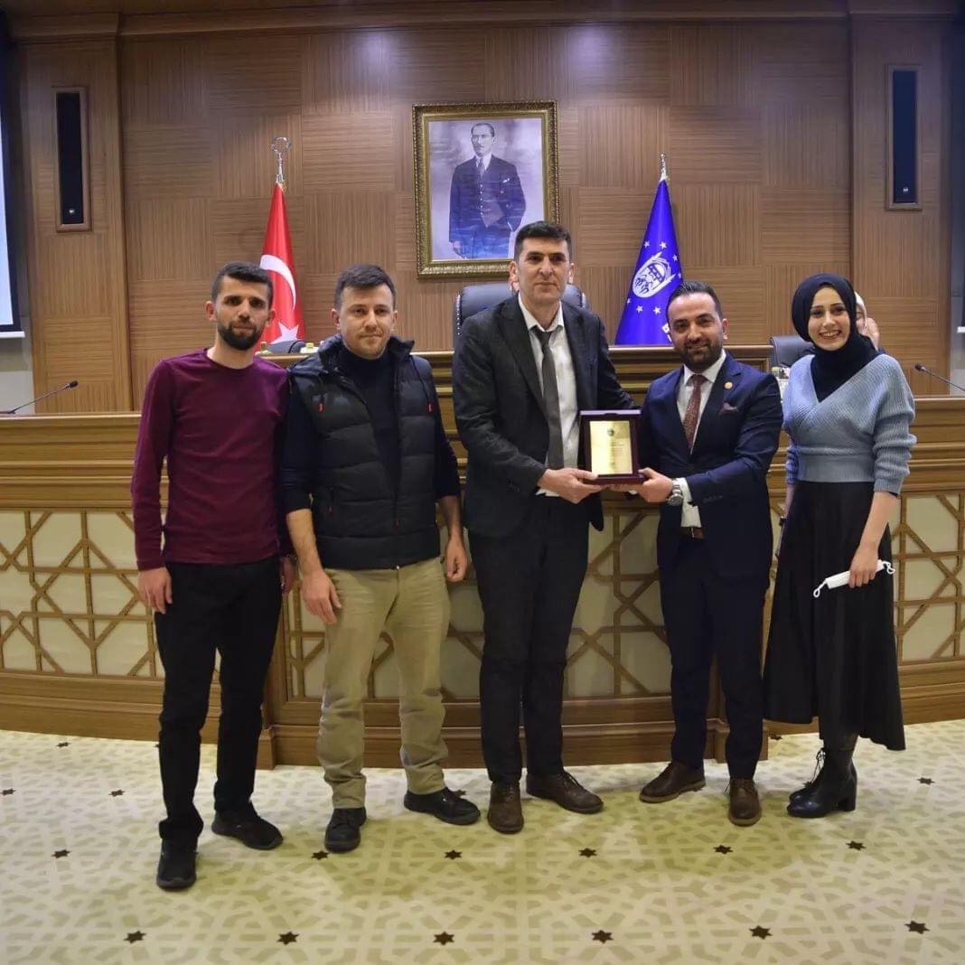 Büyükşehir Belediye Meclisi‘nde takdim edilen ödülü Dernek Başkanı Muharrem Ulutaş arkadaşlarıyla birlikte aldı.