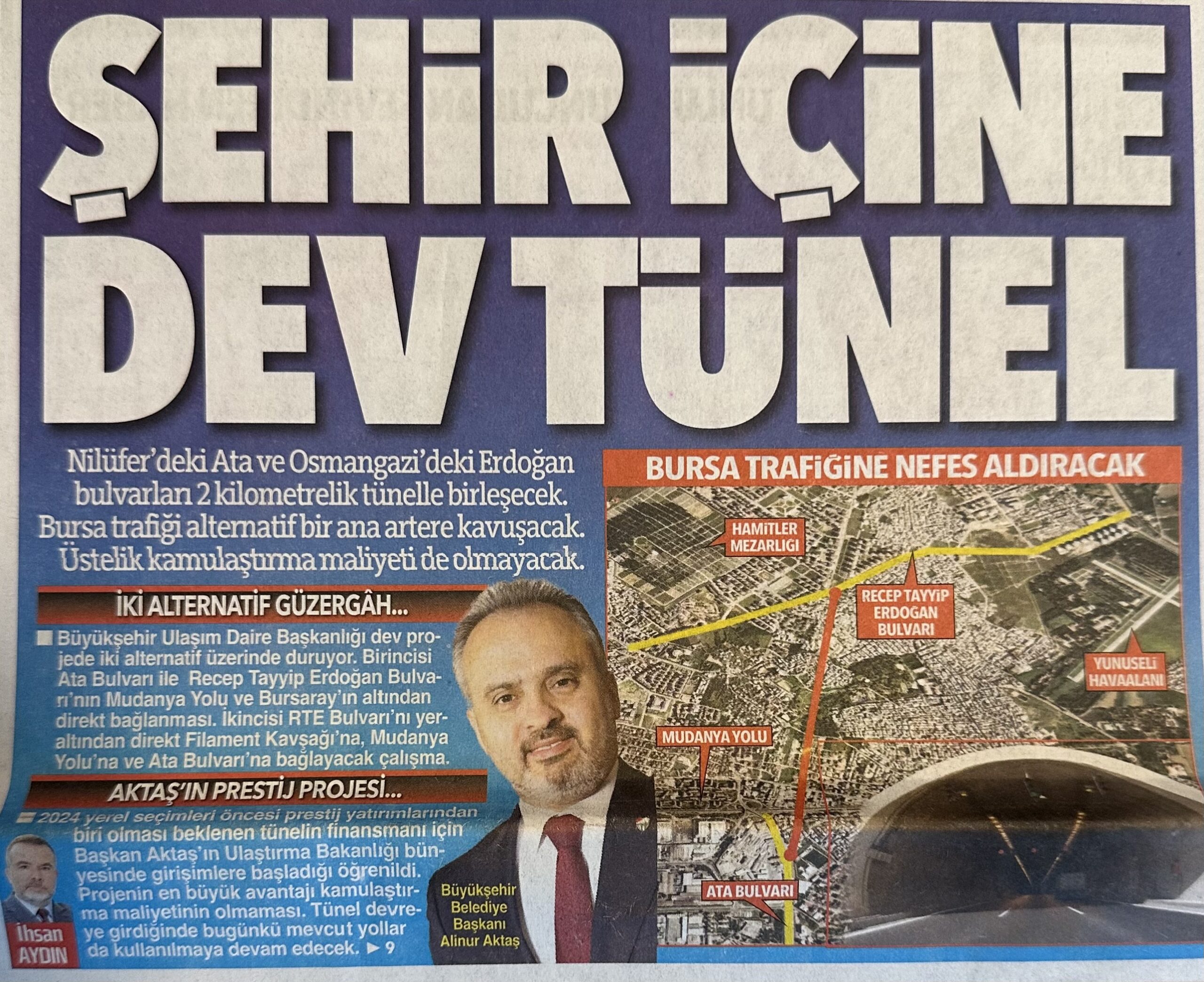 Temennimiz tünel projelerinin diğer ulaşım noktalarında da uygulanması. Başkan Aktaş’ın 2019 seçim vaatlerinden biri olan tünel inşaatına başlanırsa Bursa bu yönde bir ilki daha yaşamış olacak.
