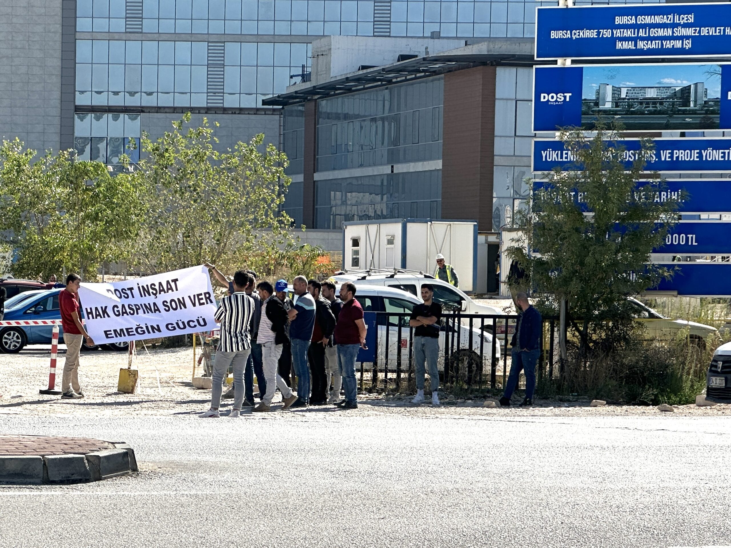 İnşaatı süren Ali Osman Sönmez Devlet Hastanesi şantiyesi önünde mini bir emekçi eylemi gözümüze çarptı.