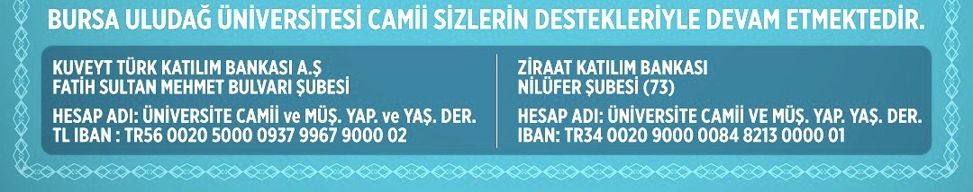 Tamamı hayırsever katkısıyla yapılan Bursa Uludağ Üniversitesi Camisi’nde eksik kısımların tamamlanması için Cami Yaptırma ve Yaşatma Derneği de hummalı bir bağış toplama çalışması yürütüyor.