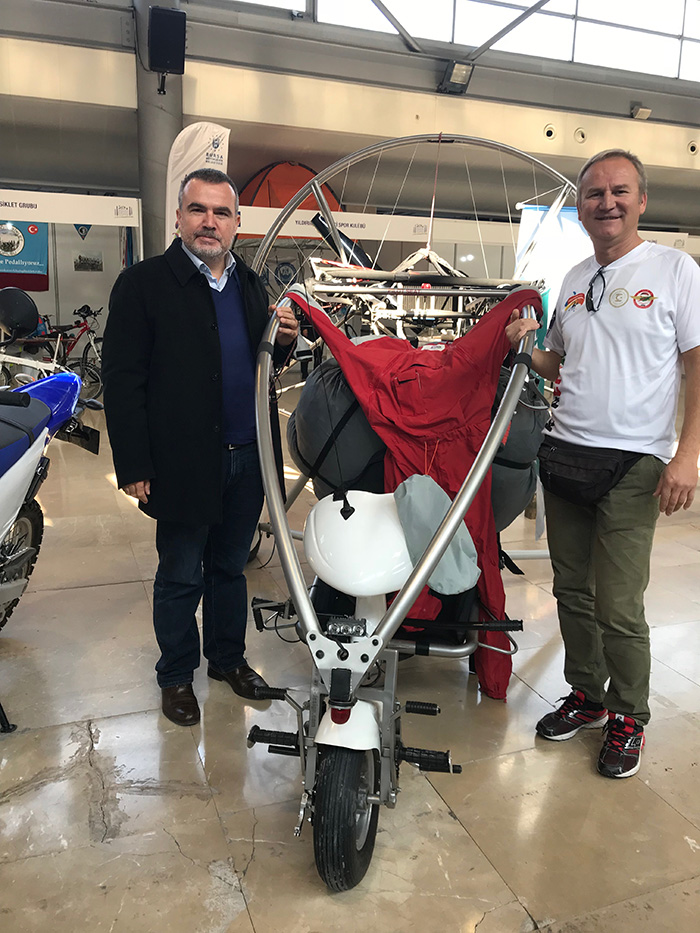 İnegöl Belediyesi’nin DOSTUM isimli Doğa Sporları Merkezi’nin paramotorları da etkinliğin en çok ilgi görenlerinden.