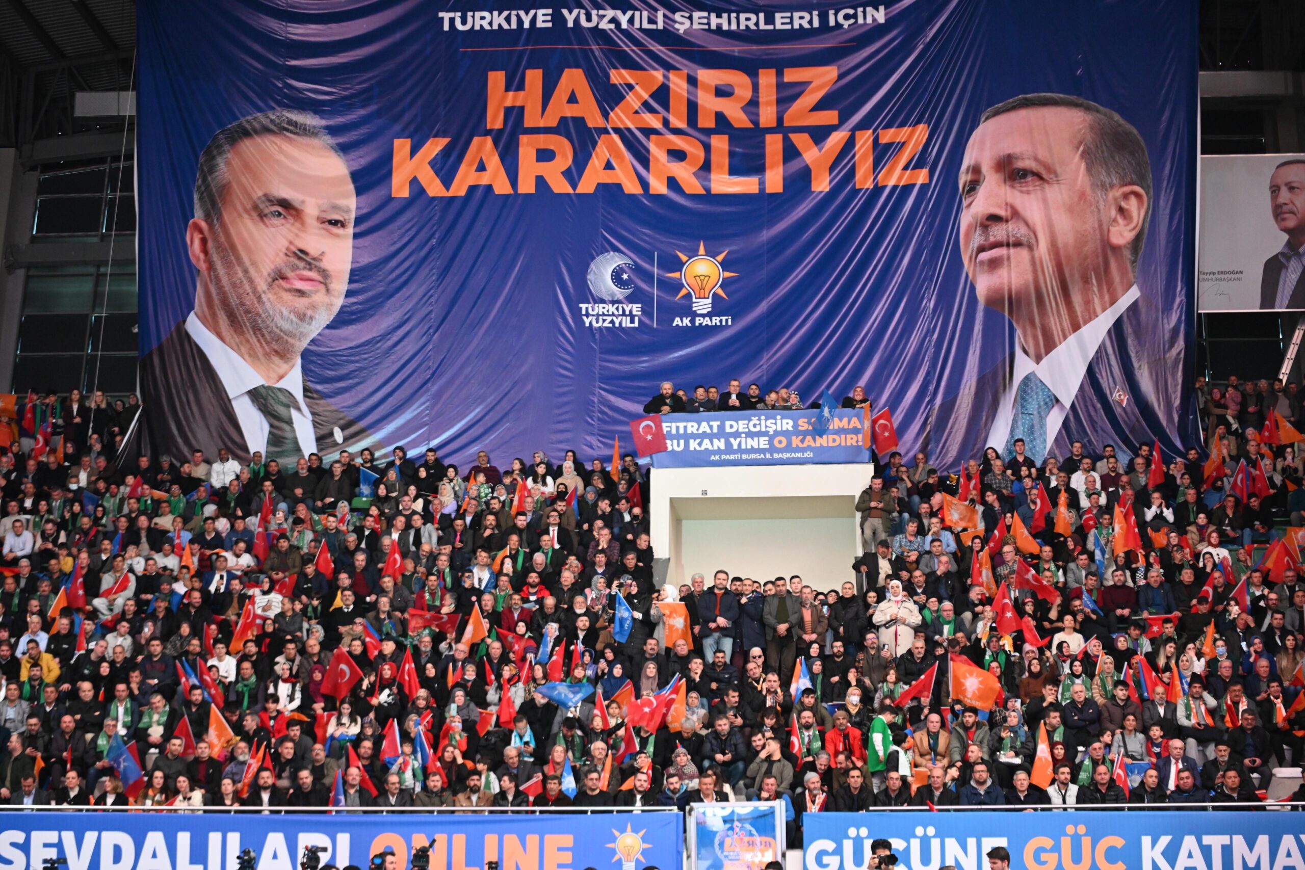 Erdoğan gözlerinin belediye başkanlarının üzerinde olacağını da hatırlattı ve onlara sahip çıkmaları için, “Buradan öyle bir ses verin ki, Uludağ’ın zirvesinden ovaların en ucuna kada Bursa’da duymayan kalmasın” dedi.
