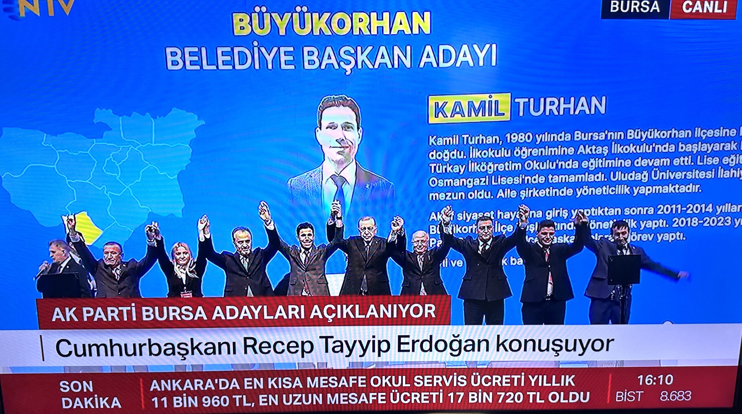 Dün öğleden sonra saat helikopterle Fethiye’deki Büyükşehir Belediyespor Tesisleri’ne inen Erdoğan buradan TOFAŞ Spor Salonu’na geçti ve partisinin 17 ilçe belediye başkan adayını Bursa kamuoyuna duyurdu.