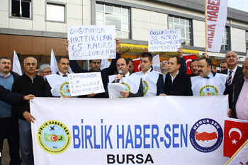 Memur-Sen‘e bağlı Birlik Haber-Sen Bursa Şubesi‘ne üye postacılar, Beşevler‘deki Bursa PTT Baş Müdürlüğü önünde yaptıkları eylem ve basın açıklamasıyla artan iş yüküne, ve ücret eşitsizliğine dikkat çektiler.