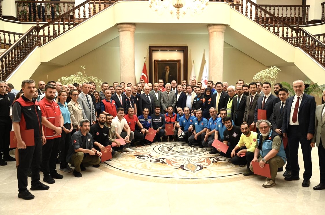 Bursa Valisi Erol Ayyıldız, Harmancık ve Gürsu yangınlarında bütün ekipman ve personeliyle mücadele eden Bursa’daki belediye başkanlarımıza, kaymakamlara, STK’lara, AFAD ekiplerine takdir beratı vermiş.