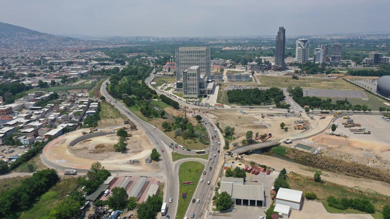 Bursa Büyükşehir Belediyesi’nin bugün için kent merkezinde yapımını sürdürdüğü iki önemli kavşak çalışmasından biri Stadyum önü, Mudanya-İzmir Yolu üstündeki proje diğeri ise Yakın Doğu Çevre Yolu’ndaki Yeni Adliye Kavşağı.