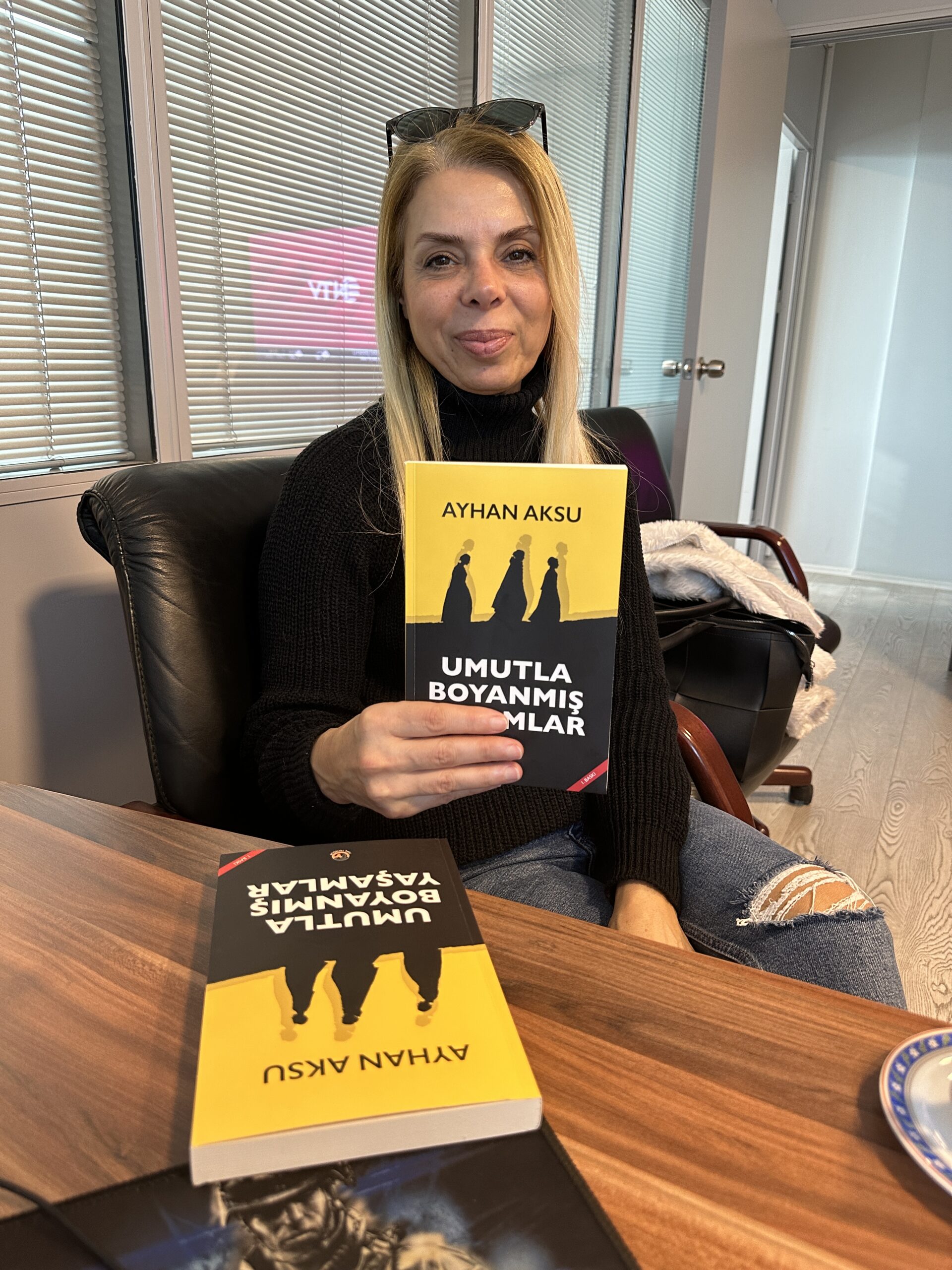 Elindeki gerçek hikâyeyi diğer kadınlarımızın yaşamlarına örnek olması adına ölümsüzleştirmek ve kayda geçirmek için büyük uğraşlar veren Aksu’nun, ‘Umutla Boyanmış Yaşamlar’ adlı kitabı Tunç yayıncılıktan piyasaya çıktı.