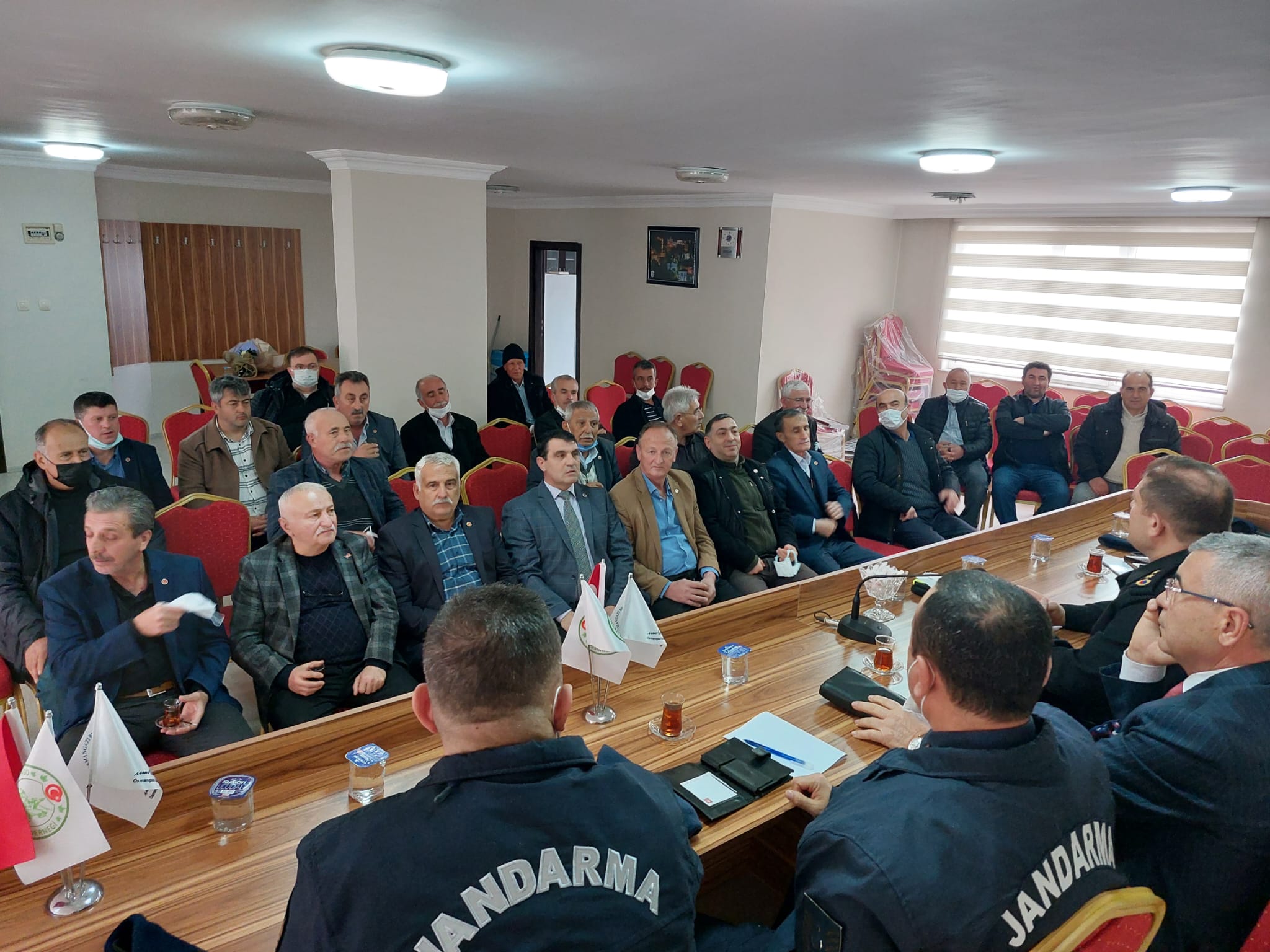İlçedeki hırsızlık, asayiş ve orman yangınlarıyla mücadelede muhtar-jandarma işbirliğinin önemine vurgu yapılmış.