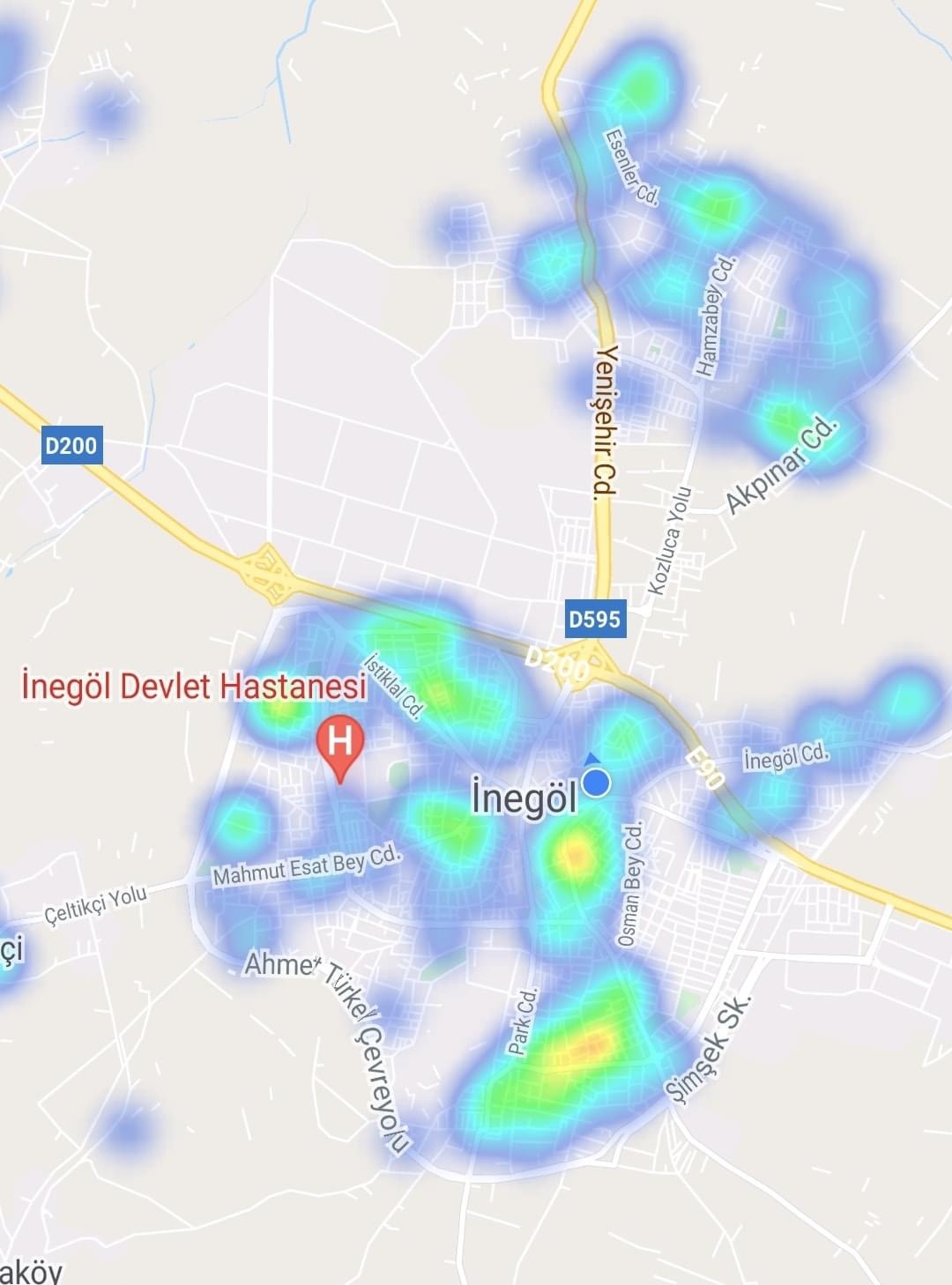 İnegöl ilçemizde gerçekten vakalar yok denecek kadar azalmış. Haritadan yeşil alanlar giderek çoğalmış. Kırmızı alan yok denecek gibi.