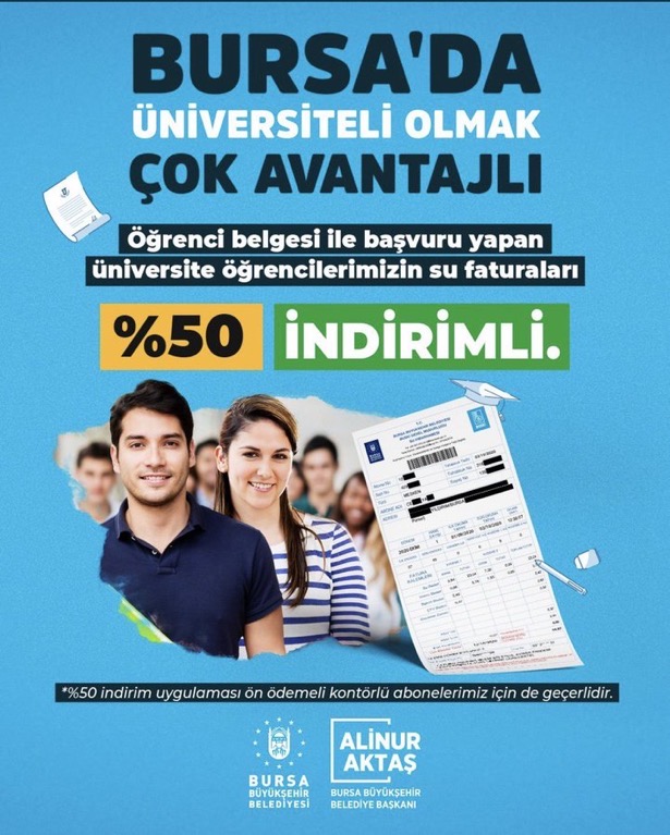 Malumunuz Bursa’da üniversite okuyan öğrencilere BUSKİ Genel Müdürlüğü yüzde 50 daha ucuz su veriyor. Ev tutan öğrenciler belgeleriyle BUSKİye geldiklerinde yüzde 50 indirimli su abonesi olabiliyor.
