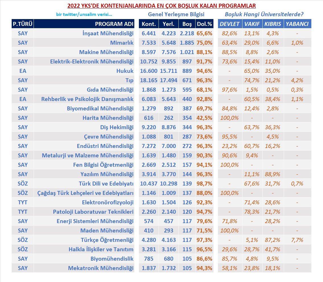 Türkiye’deki vakıf ve devlet üniversitelerinindeki inşaat mühendisliği bölümlerinin yüzde 35’i boş durumda. Belki ikinci tercih döneminde dolacaktır. Albayrak’ın deprem gerçeğine rağmen üniversitelerimizin inşaat mühendisliği bölümlerindeki 2 bin 218 kontenjanın boş kalmasına dikkat çekmesini bu açıdan önemsiyoruz.