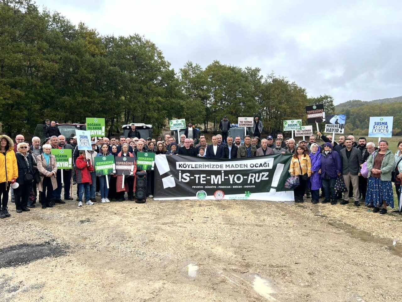 Bursa ve Gemlik Kent Konseyi, DOĞADER, MHP ve SP ilçe başkanları, Artvin Kafkas Dernekleri ile Giresunlular Derneği yöneticilerinin de katıldığı eylemde konuşan Fevziyeliler Dernek Başkanı Osman Kayaalp, kendi mahalleleriyle birlikte, Şükriye, Fındıcak, Ericek ve Dışkayalılarında bölgede açılmak istenen madene karşı olduklarını ve istemediklerini söyledi.