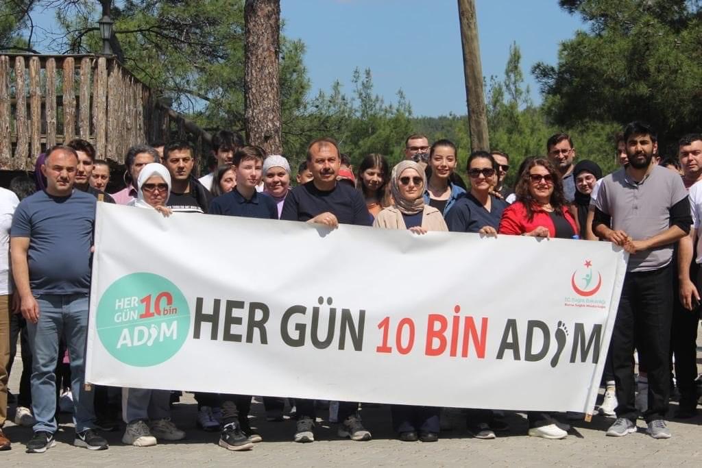 Harmancık Devlet Hastanesi doktor ve yöneticileri, çalışanları, ilçe protokolü önceki gün ‘Sağlıklı Yaşam Yürüyüşü’ adıyla 10 bin adım hareketi başlattılar.