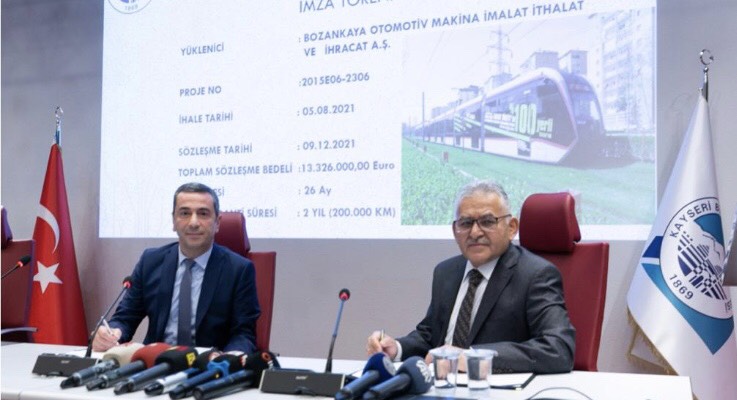 Kayseri Büyükşehir Belediyesi’nin daha önce yerli marka Ankara merkezli Bozankaya‘da satın aldığı 31 tramvaya ilaveten 6 araç alımı için daha protokol imzalanmış.