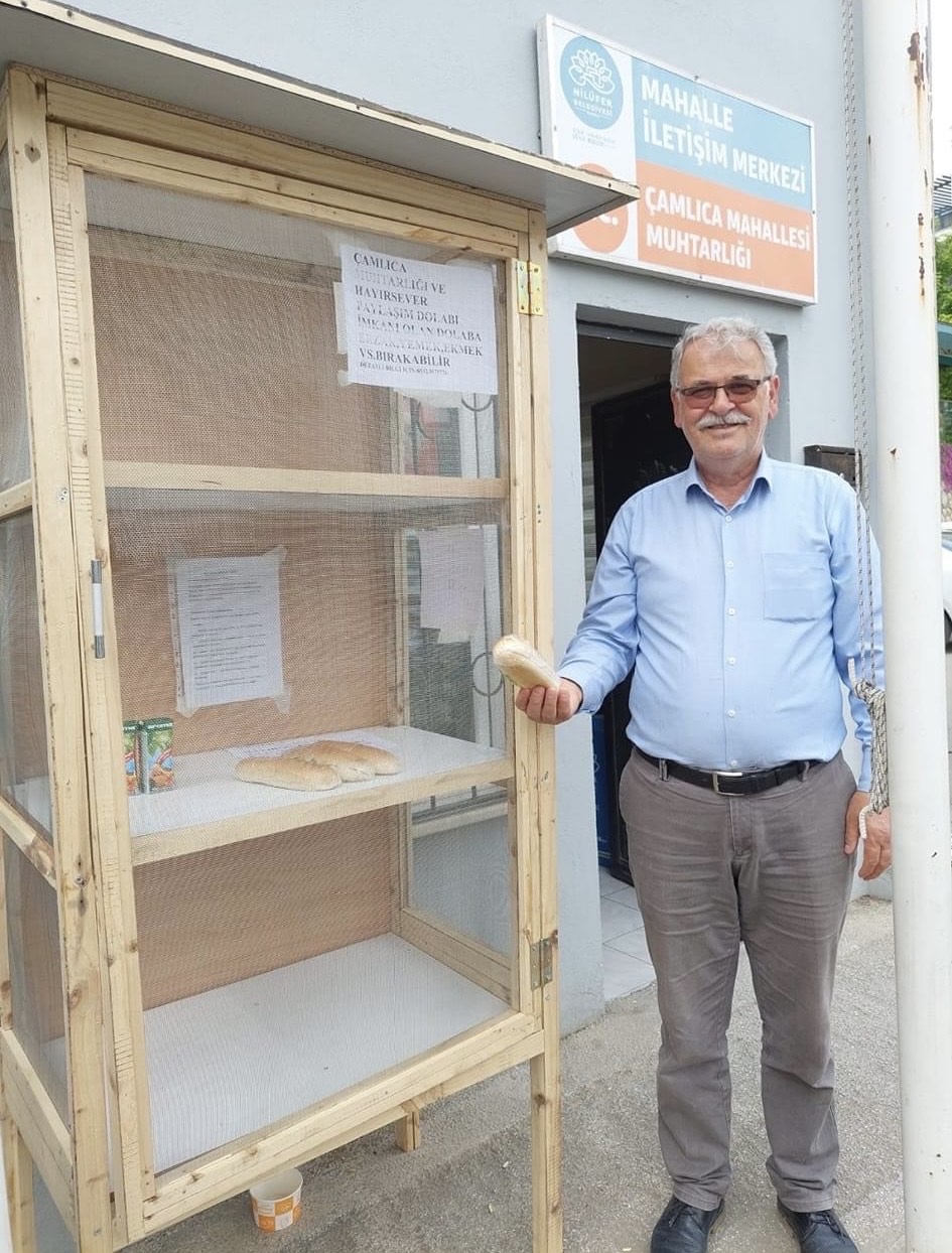 Çamlıca Muhtarı Orhan Öztürk mahallesindeki hayırsever ve işletmelerin ihtiyaç sahipleri için bu dolaba yiyecek getirmelerini istiyor. İhtiyaç sahipleri de kilidi olmayan o dolaptan istedikleri gıda ürünlerini alabilecekler.