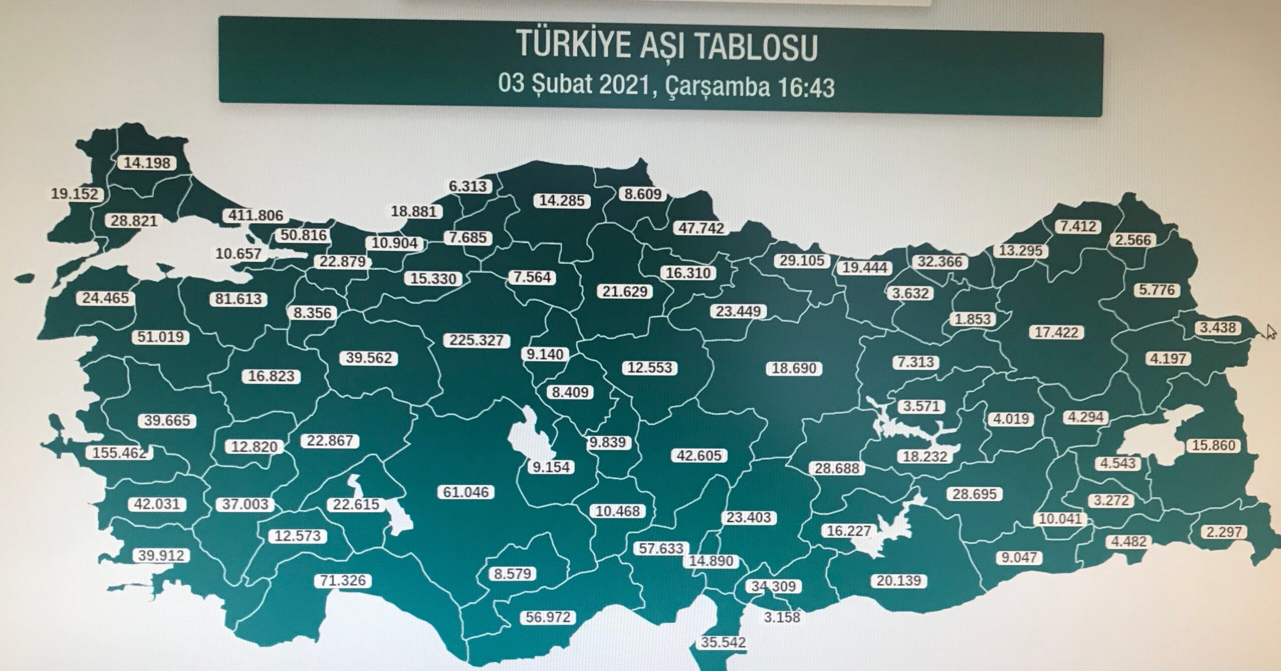 Dün Sağlık Bakanlığı’nın aşılama haritasına göz attığımızda, ülke genelinde 2.4 milyon yurttaşımızın aşılandığını görüyoruz.