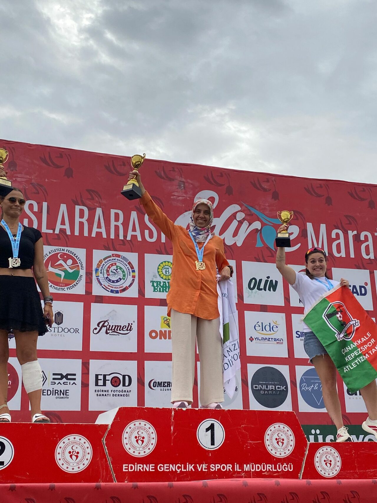 Postacı Ayşe Küçük, en son gerçekleşen 10. Edirne Maratonu’nda yaş kategorisinde birinci, genel sıralamada ise 7. olarak Bursa’ya dönmüş.