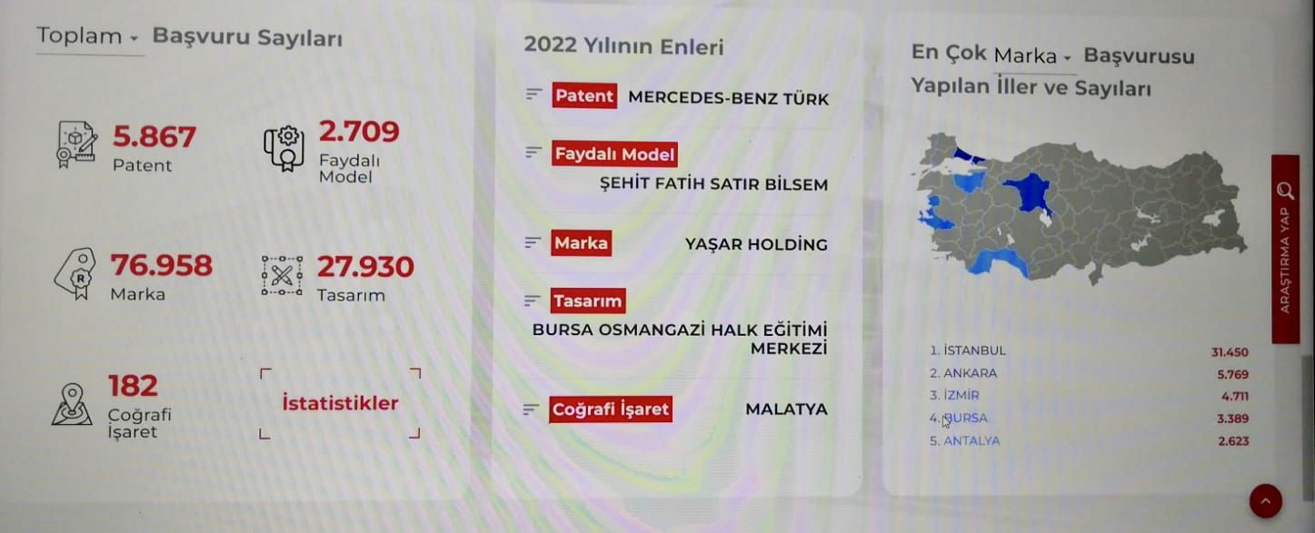 Türkiye Patent ve Marka Kurumu 2022’nin ‘en’lerini açıkladığında Bursa’ya Türkiye birinciliği geldi.