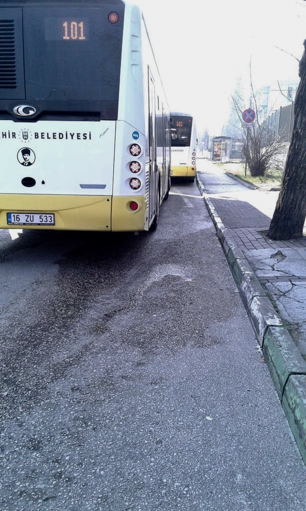 Yani, UEDAŞ önünden kalkan otobüsler saatlerini doldurmak için buradaki durak cebini otopark olarak kullanmayı sürdürüyorlarmış.