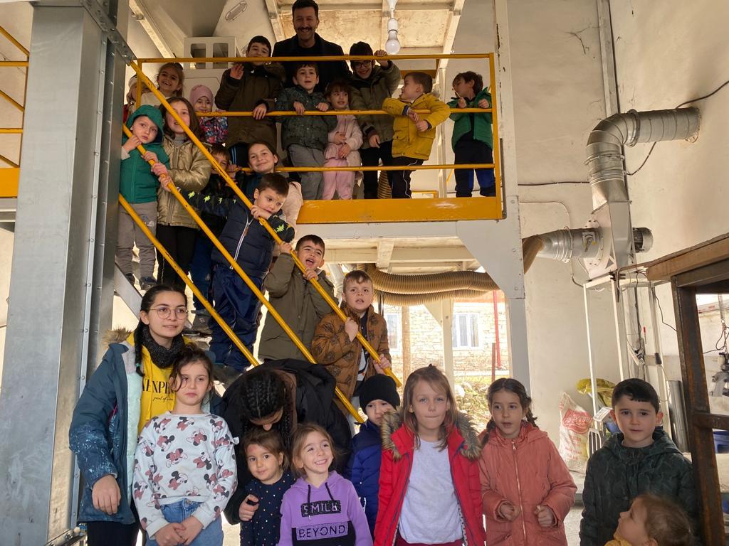 Bursa’dan Özel Alim Okulları öğrencilerini ağırlayan Yazıbaşı Mahallesi sakinleri çöreotu yağı üretiminin yapıldığı tesisi çocuklara gezdirdiler.