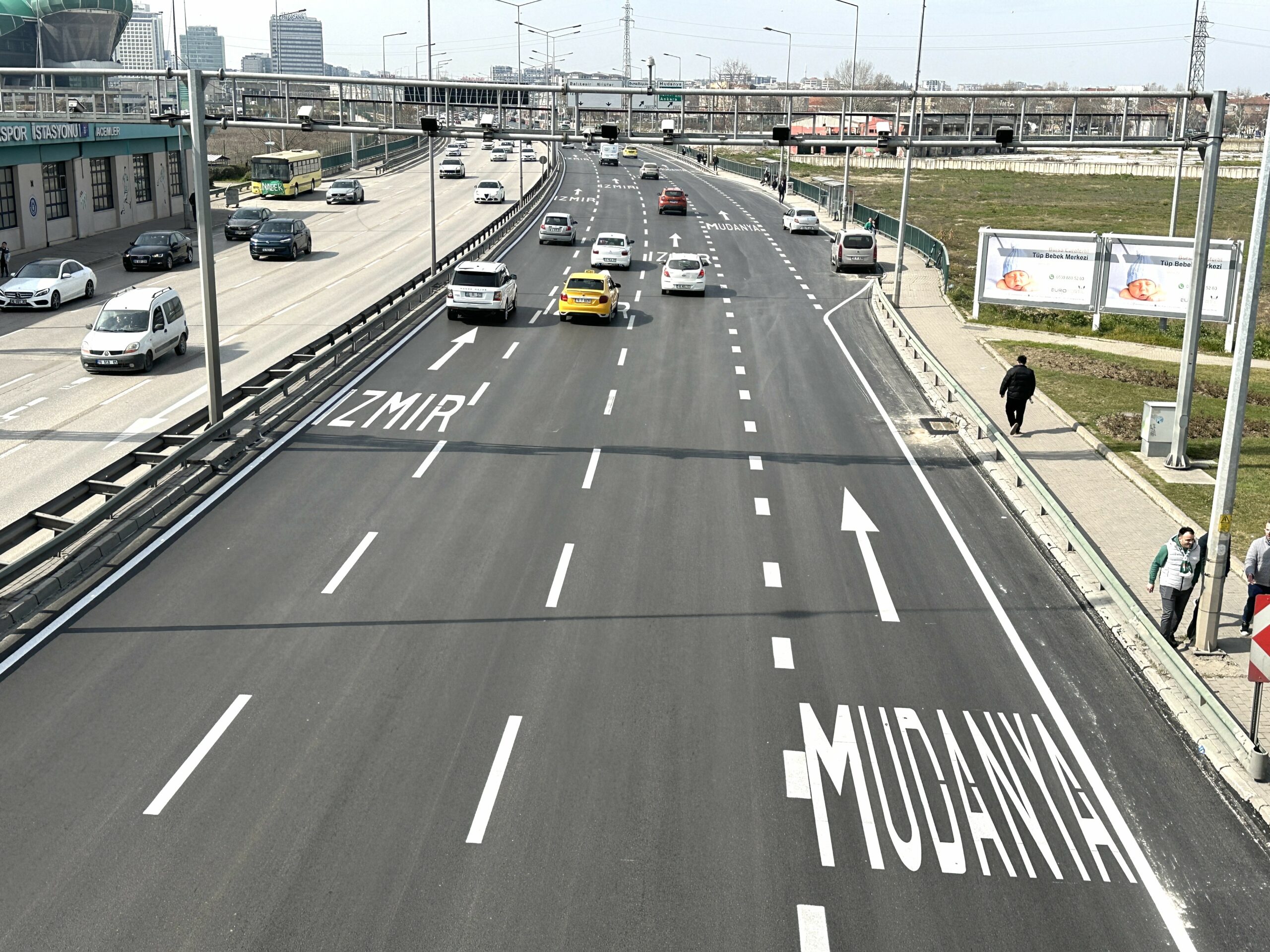 Büyükşehir Belediyesi Ulaşım Daire Başkanlığı burada şerit genişletme çalışması yaptı. Asfalt üstüne de büyük puntolarla gidiş yönünü gösteren yazılar yazdı.