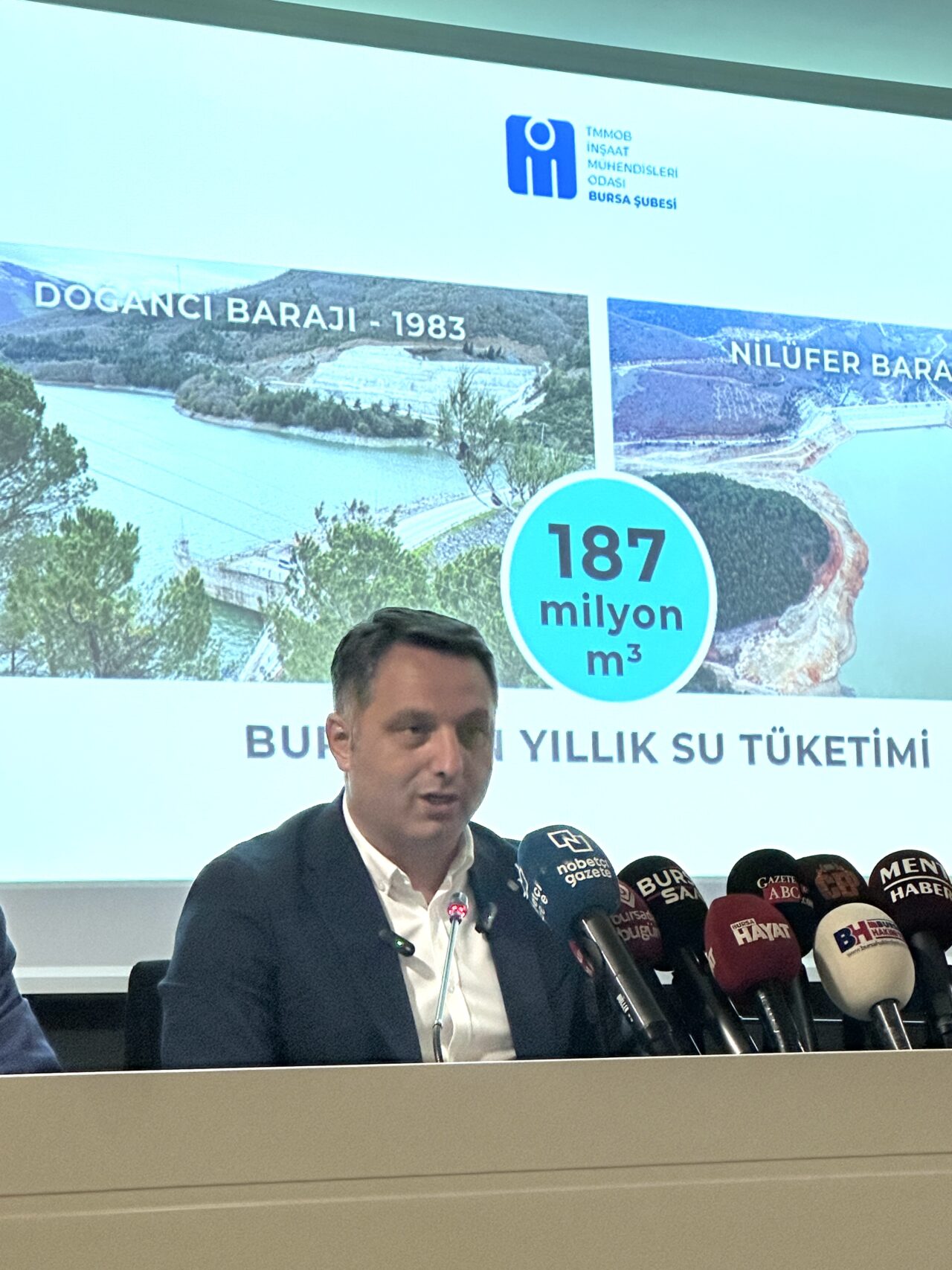 İMO Bursa Şube Başkanı Serdar Atilla Erdem düzenlediği basın toplantısında, 145 milyon metreküp içme suyu rezervinden 70 milyon metreküp su talep eden ve kuyruğundan da 18 milyon metreküp daha su isteyen TEKNOSAB, TOSAB ve Deri OSB’ye, “Çınarcık’tan uzak durun” dedi.
