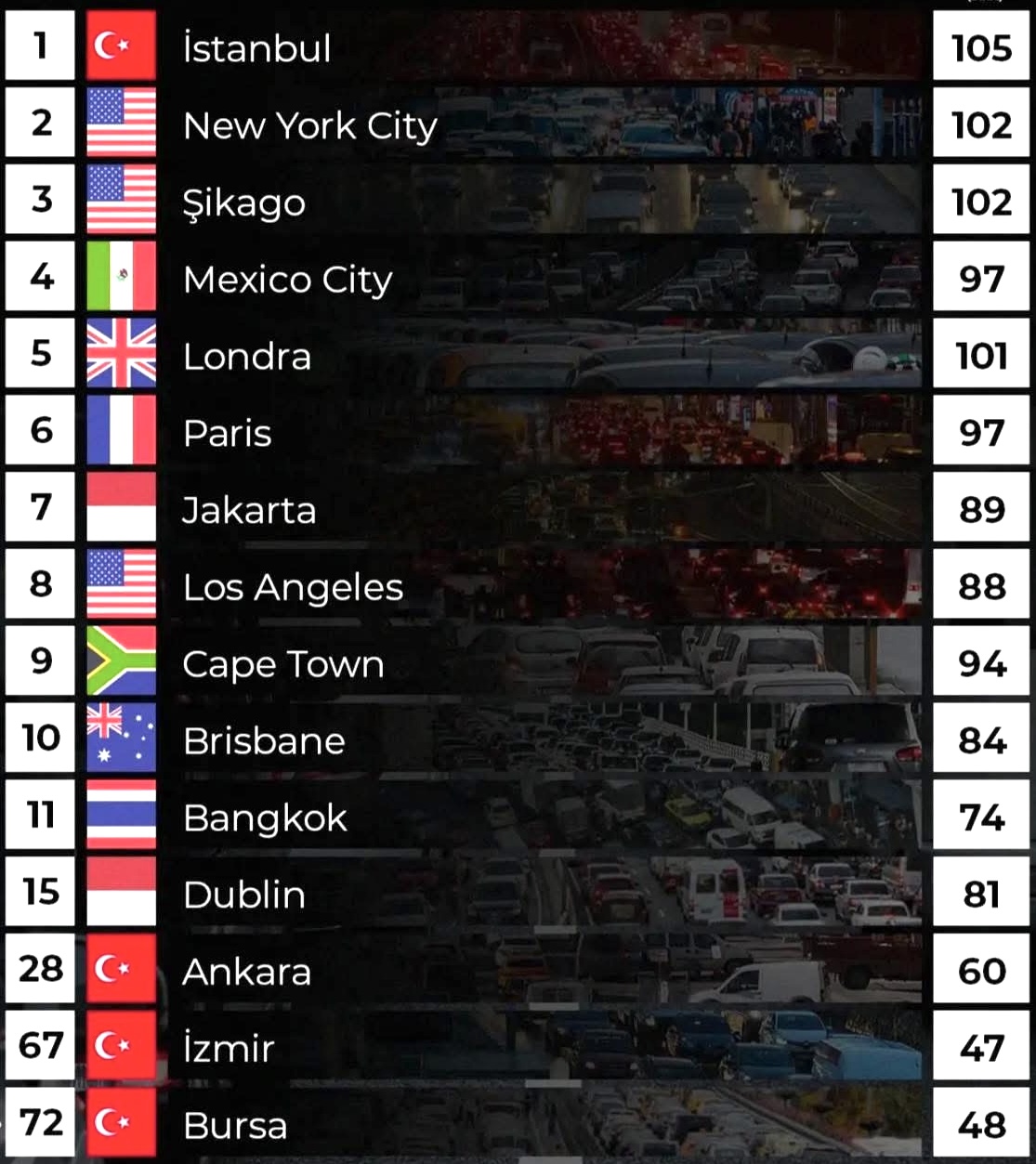 Yani, dünyanın en berbat trafiğine sahip kentler arasında yerimiz sağlam demek.