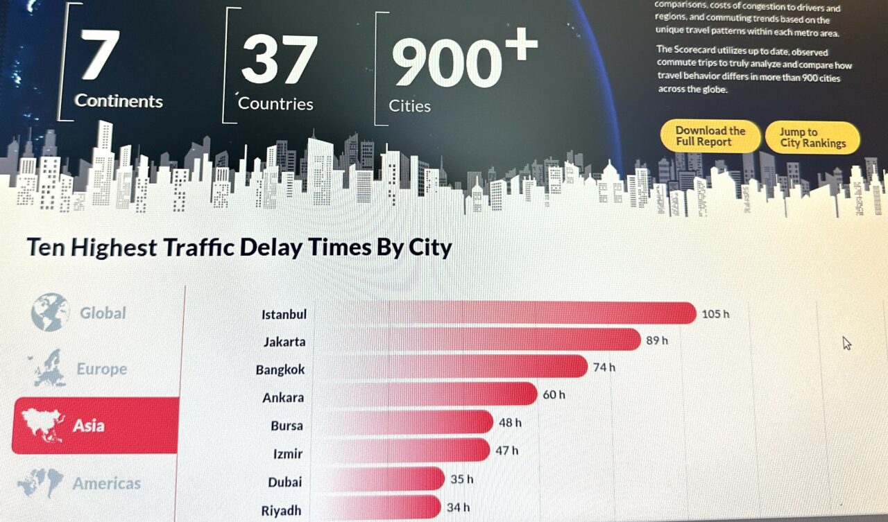 İnrix’in 2024 yılında 7 kıta, 37 ülke ve 900 şehirde yaptığı araştırma sonuçlarına göre; dünyanın en kötü trafiğine sahip şehirler içinde İstanbul ilk sıraya oturmuş.