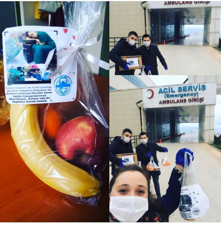 Genel Başkan Semih Öz, Genel Sekreter Merve Tufan, Genel Başkan Yardımcısı Okan Giden ve Orhangazi Şube Başkanı İbrahim Coşkun ile Orhangazi Devlet Hastanesi Acil Servisi’ne giderek çalışanlara içinde meyve dolu enerji paketleri dağıtmışlar.