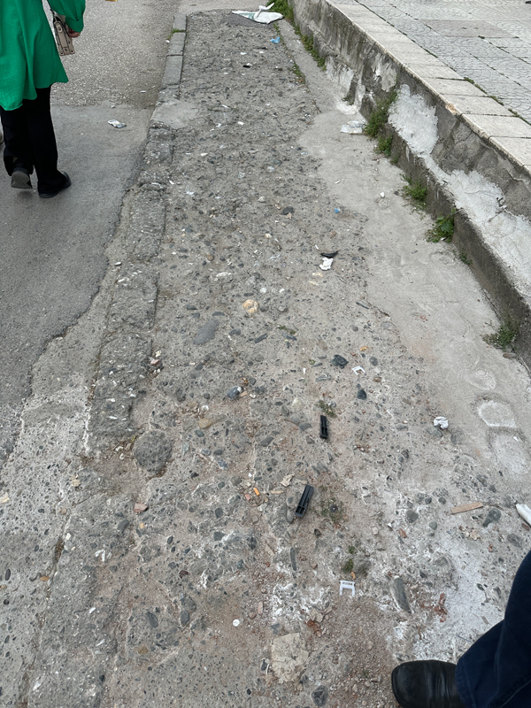 Hele kimi sözde kaldırım kesitleri de tarladan beter. İşyerlerinin koduna göre yükselen, alçalan, yayayı hiçe sayan, zaman zaman 10 santimetre genişliği bile bulmayan kaldırımlı bu caddeye bugüne dek niçin el atılmamış doğrusu merak ettik.