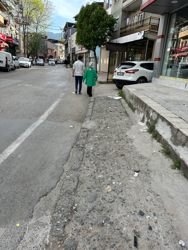 Burada caddenin darlığı yüzünden karşılıklı geniş tretuvar ve kaldırım yapamayabilirsiniz ama muhakkak bir çözümü vardır.