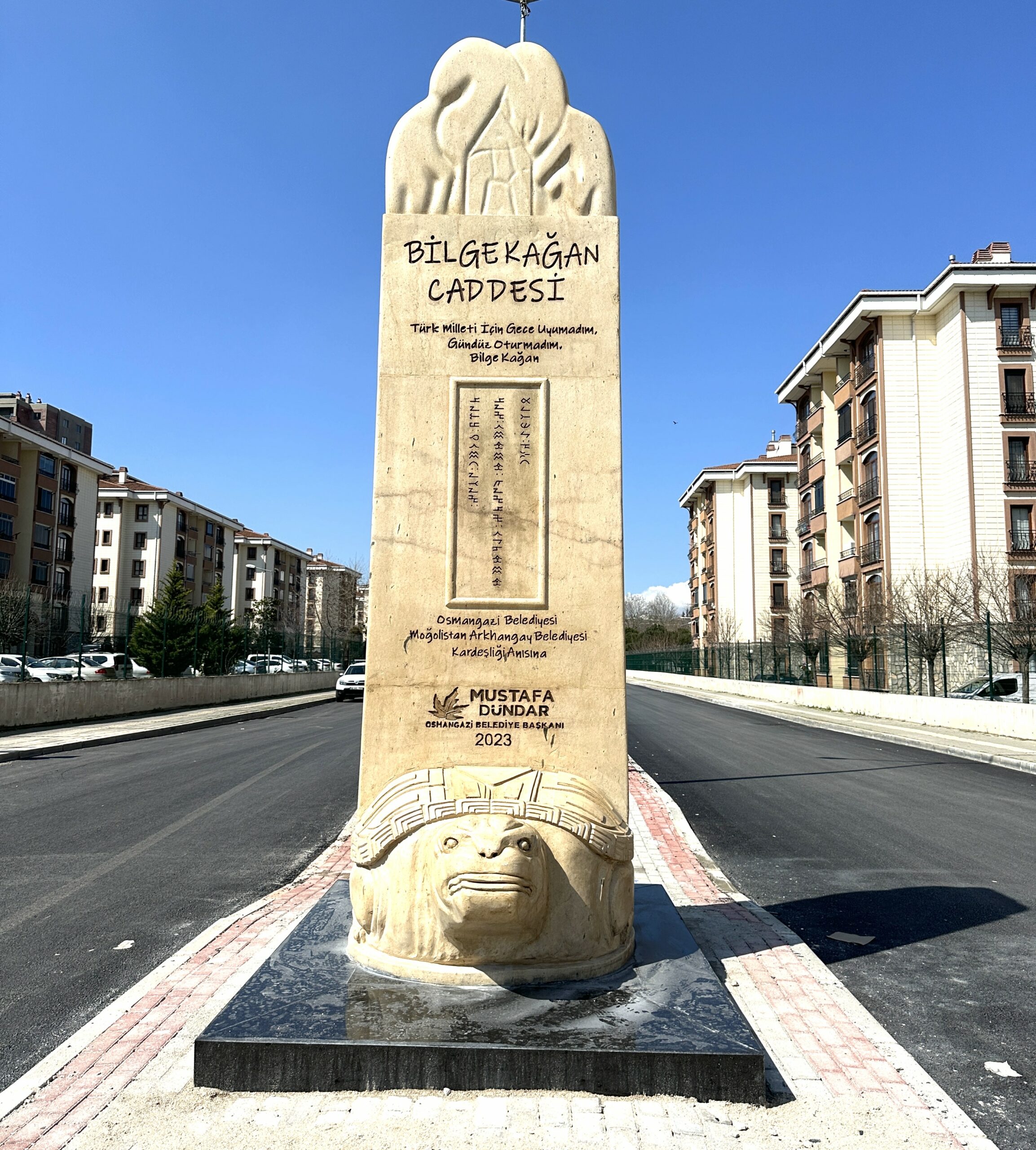 Osmangazi Belediye Başkanı Mustafa Dündar, Arkhangay Belediyesi ile kardeşliğin sembolü olarak diktikleri Bilge Kağan Anıtı’nın bulunduğu ve aynı ismi alan caddeyi komple yenilediklerini ve Osmangazi’ye Göç ve Yurt anıtlarından sonra bir anıt daha kazandırmış olduklarını söyledi.