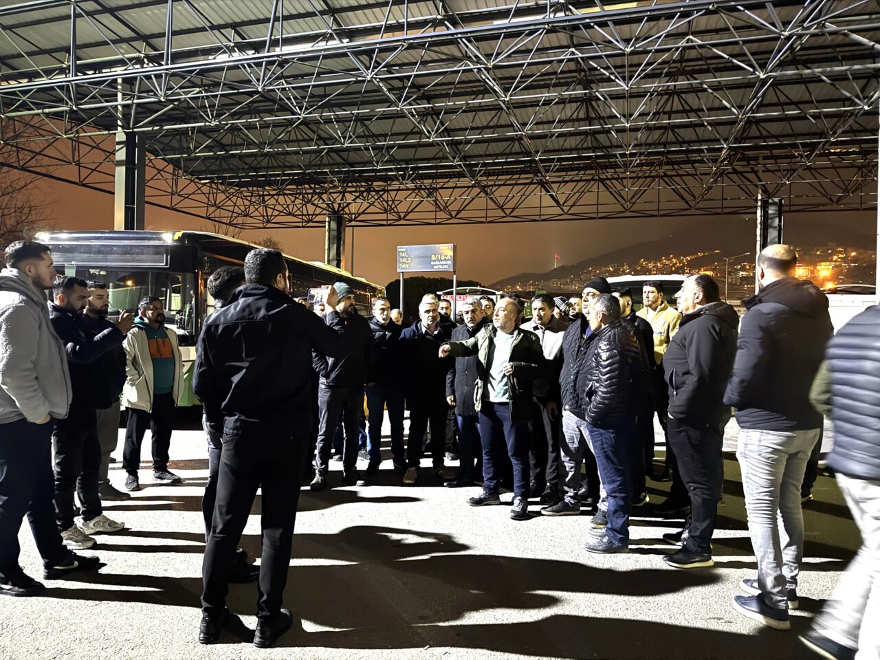 Acemler’deki gece açıklamasında Özel Halk Otobüsçülerinden eylem kararı paylaşıldı.