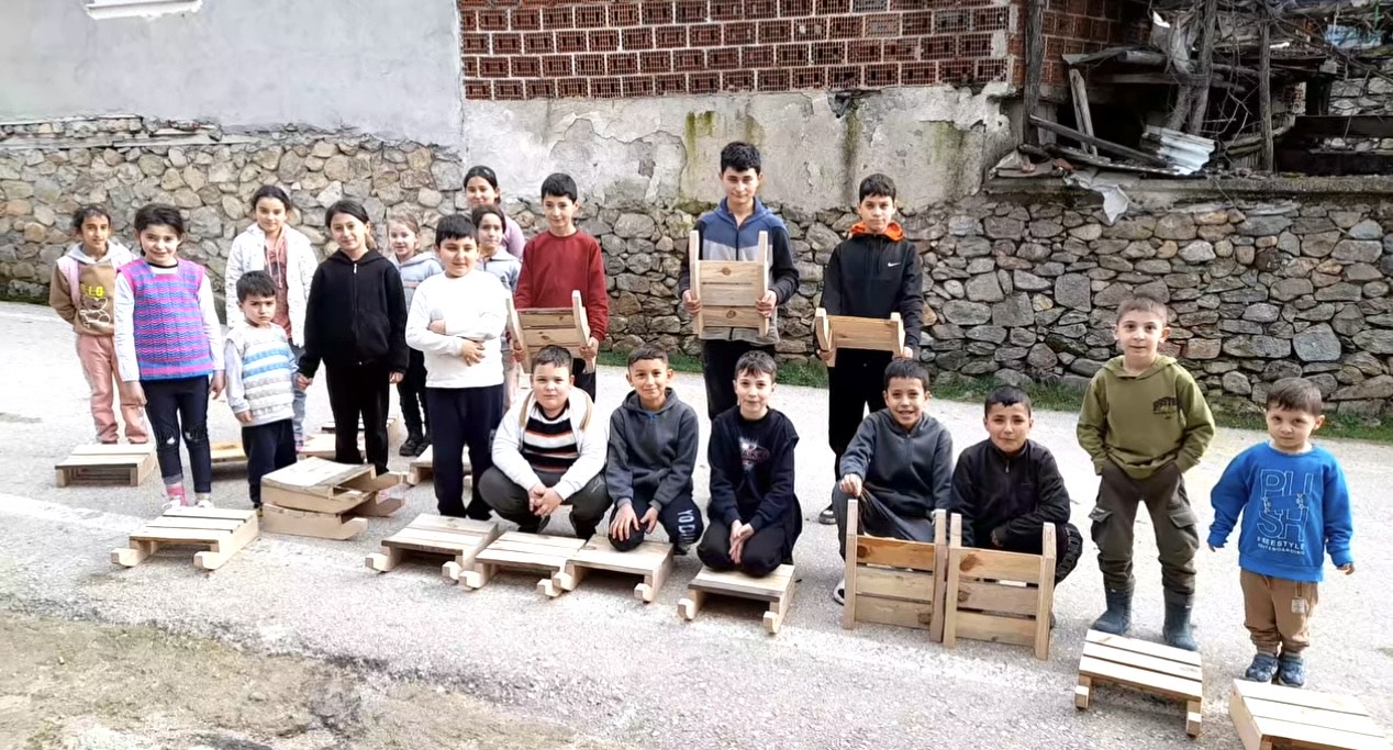 Aynı zamanda marangoz olan Muhtar Öztürk atölyesinde kendi elleriyle yaptığı ahşap kar kızaklarını çocuklara hediye etmiş.