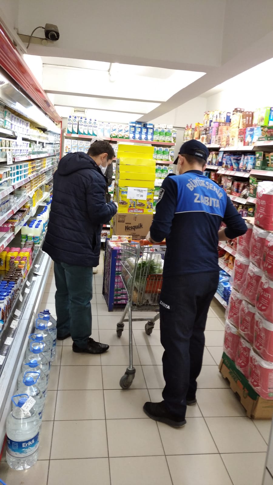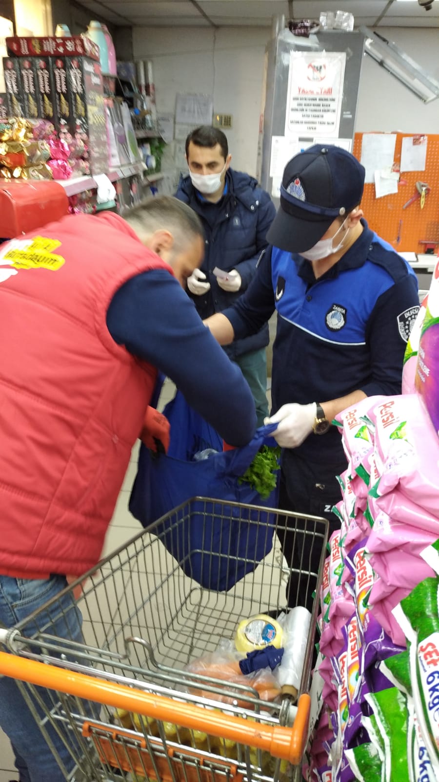 Sokağa çıkmaları yasaklanan 65 yaş üstü kimsesiz vatandaşlarımızdan Alo 153’e gelen ihtiyaç listeleriyle markete giden zabıta memurları, hemşehrilerimizin ihtiyaçlarını aldıktan sonra kapılarına teslim ediyorlar.