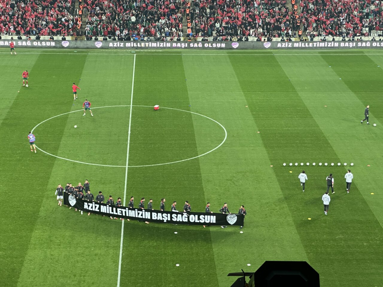 Gürcistan‘da düşen kargo uçağımızda şehit olan kahramanlarımız da unutulmadı. Futbolcular sahaya, “Aziz milletimizin başı sağolsun” yazılı siyah pankartla çıktılar, ayrıca kollarına da siyah bant taktılar. Şehitler için her iki takım oyuncuları, hakem kadrosu ve tribünler saygı duruşunda bulundu.