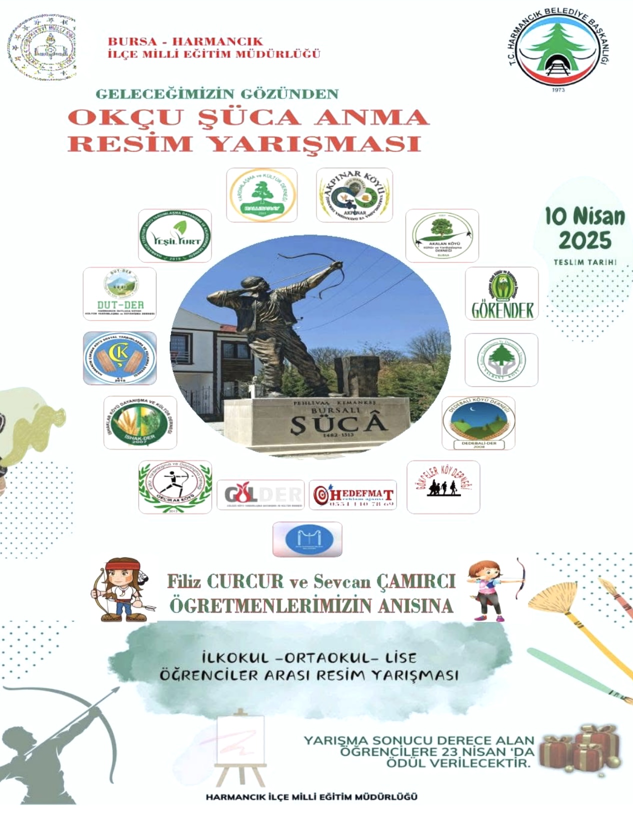 İlçe Milli Eğitim Müdürlüğü koordinasyonundaki resim yarışması, ilçenin Akpınar Mahallesi doğumlu öğretmenleri merhum Filiz Curcur ve Secvan Çamırcı adına başlatıldı.