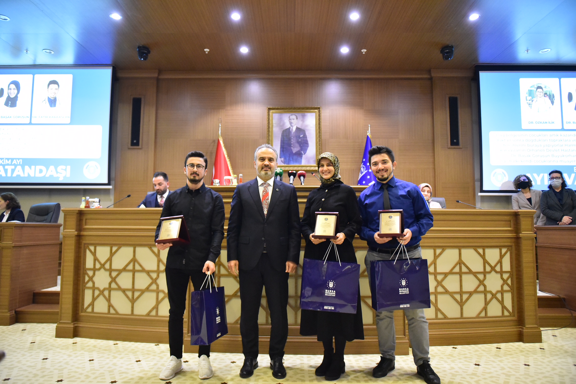 Orhaneli Devlet Hastanesi’nde göreve başlayan Harmancık Gökçeler doğumlu Dr. Fatih Karaaslan, Büyükorhan Devlet Hastanesi’nde görev yapan ilçe doğumlu Dr. Başak Görüşün ve Dr. Özkan İlik, Bursa’nın vefalı doktorları olarak Büyükşehir Belediye Başkanı Alinur Aktaş tarafından onurlandırıldılar.