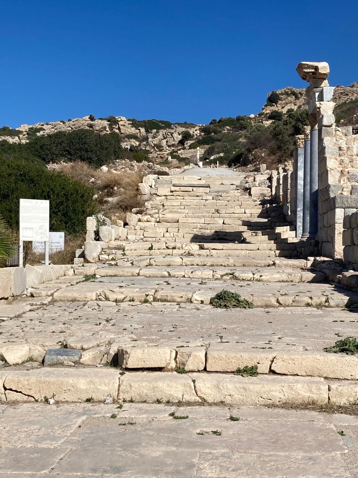 Serbest zaman bitiminde Knidos antik kente doğru yol alırken otobüsümüz taş evlerle dolu köylerin dar yollarından geçti. Knidos Türkiye’nin en batısında yer alıyor. Melih Uslu Helenistik ve Roma dönemi yerleşiminden sütunlar, tiyatrolar, kabartmalar hakkında bilgiler verdi. Karşıda Yunanistan’ın Kos veya İstankoy diye adlandırılan adası görünüyordu…
