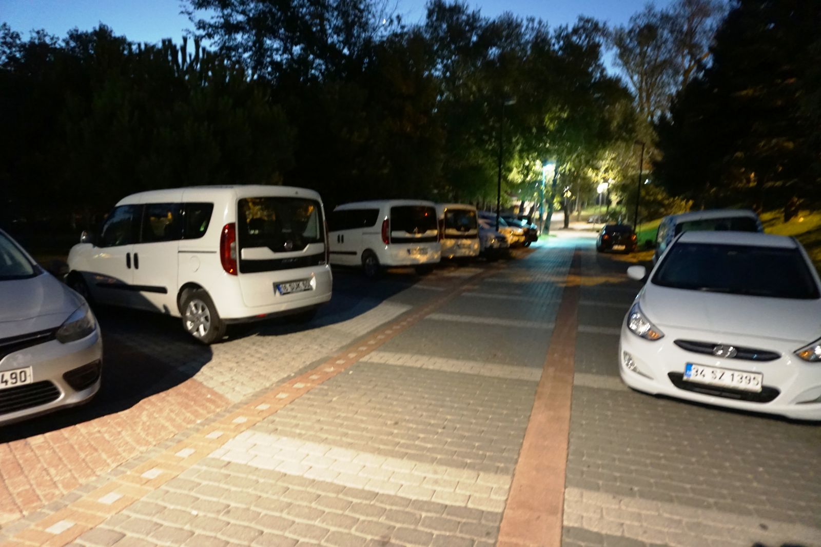 dönerseniz, park etmiş araçları görebilirsiniz.
