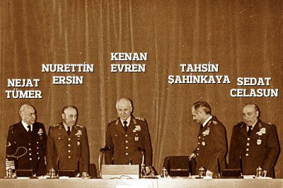Televizyonlarda Kenan Evren konuşurken, generallerin ikisi sağında, ikisi de solunda olurdu.