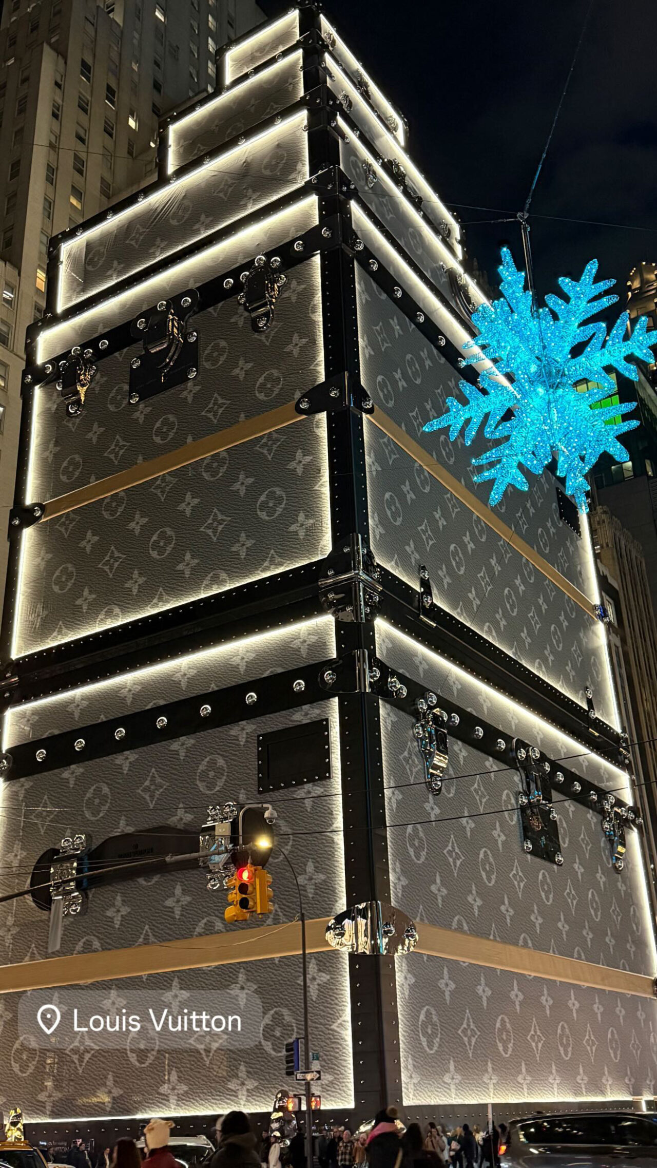 Son olarak Louis Vuitton’un New York’taki amiral mağazasına gittik. Bu mağaza, Amerika’da lüks, kültür ve gastronomiyi bir araya getiren benzersiz bir deneyim sunmakta. Binanın dış yapısı Louis Vuitton’un ikonik bagajlarını anımsatan 52 fit yüksekliğinde dört kule ile dikkat çekiyor.