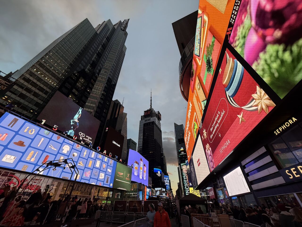 “Dünyanın Kavşak Noktası” (The Crossroads of the World) olarak da anılan dünyanın en ünlü meydanlarından biri olan Times Square’e gittik. Central Park’tan aşağı doğru yürüdüğünüzde Times Square’e varırsınız. Kafamı nereye çevirsem bir hareket. Dev LED ekranlar, koşuşturan insanlar, sokak gösterileri ve alışverişin kalbi burada atar. Ve merak ediyoruz öğreniyoruz bu reklam panolarına reklam vermenin maliyeti seçilen panonun boyutu, konumu, yayın süresi ve reklamın sıklığı gibi faktörlere bağlı olarak geniş bir yelpazede değişiklik gösteriyormuş. 15 saniyelik reklamlar 40 dolardan saatlik ücreti yaklaşık 1.000 dolardan aylık kiralama bedeli ise yaklaşık 4.500 dolardan başlıyormuş. Bazı büyük panolarda günlük reklam maliyetleri 10.000 dolardan başlayıp yüz binlerce dolara kadar çıkabiliyormuş… Bu meydanda alışveriş dükkanları yeme içme yerleri bulunuyor.