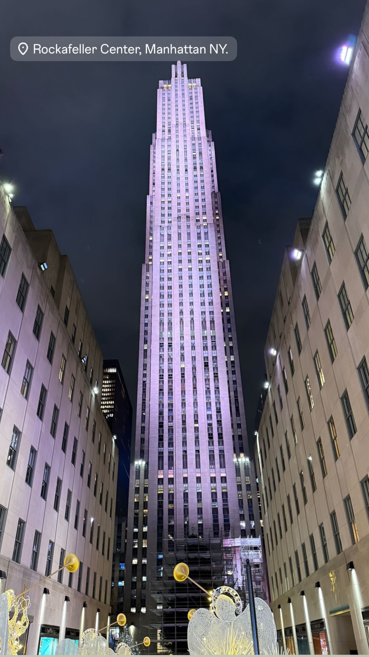Biraz ilerde New York’un ikonik sembollerinden biri olan Rockefeller Center’ı görüyoruz. Bu devasa binanın içinde mağazalar, restoranlar, kafeler ve sanat galerileri bulunuyor. Her yıl kurulan devasa yılbaşı ağacı Rockefeller Center’ın en ünlü etkinliğidir.