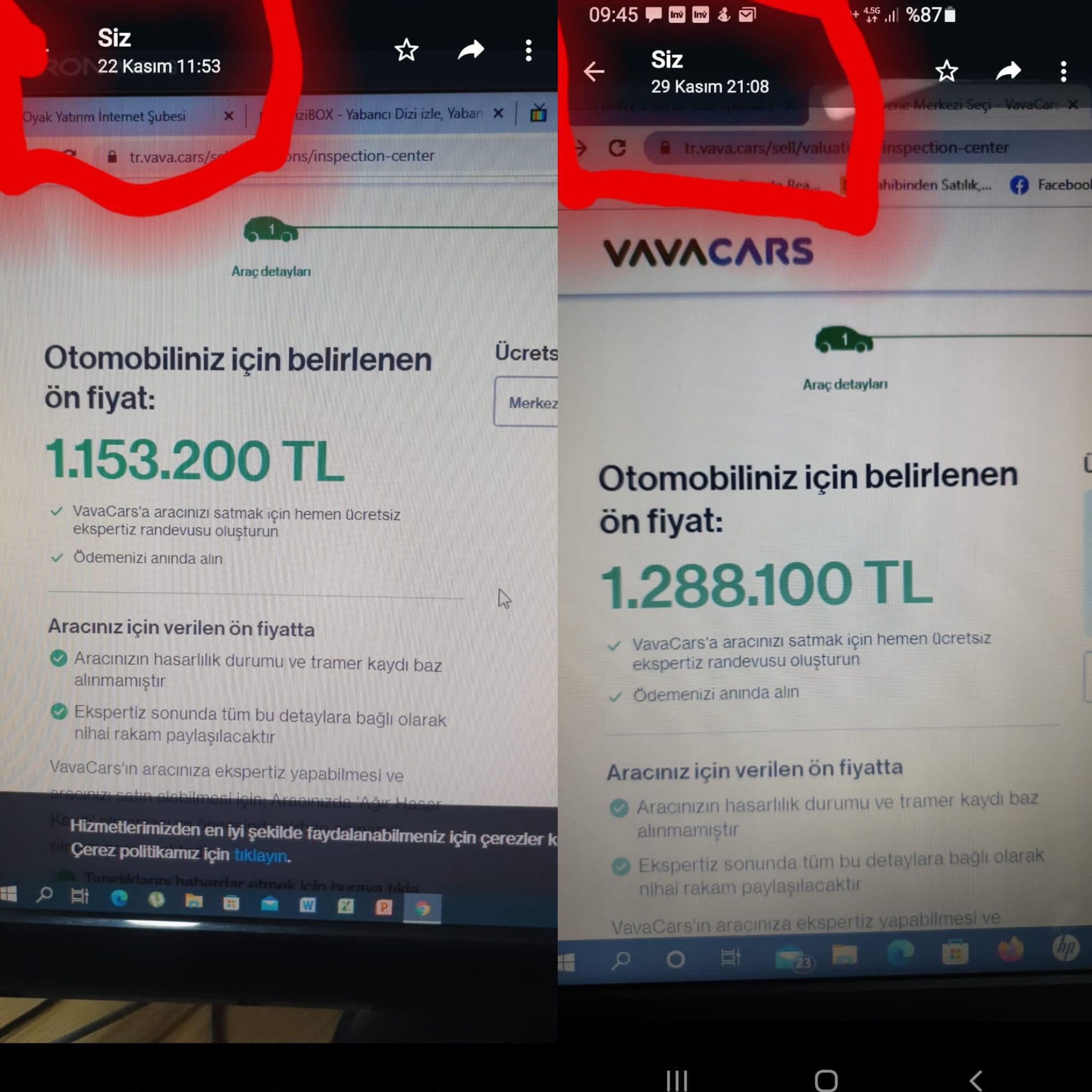 Bursa Oto Galericileri Odası Başkanı Hakan Yanık, Vavacars’ta aynı aracın farklı tarihlerdeki iki ilanını gönderdi.