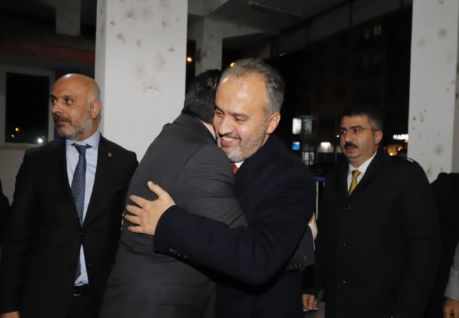 Bir kadın belediye personeli elinde çiçeklerle ‘hoş geldiniz’ derken, hemen ardından Ağrı Belediye Başkanı Savcı Sayan ile Büyükşehir Belediye Başkanı Alinur Aktaş’ın kucaklaşmasına tanık olduk.