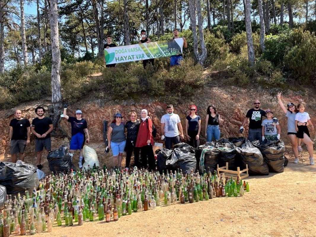 Bugüne kadar plastik şişe, cam, pil, elektronik malzeme gibi geri dönüşüme yarayacak 2,5 ton malzeme topladılar.