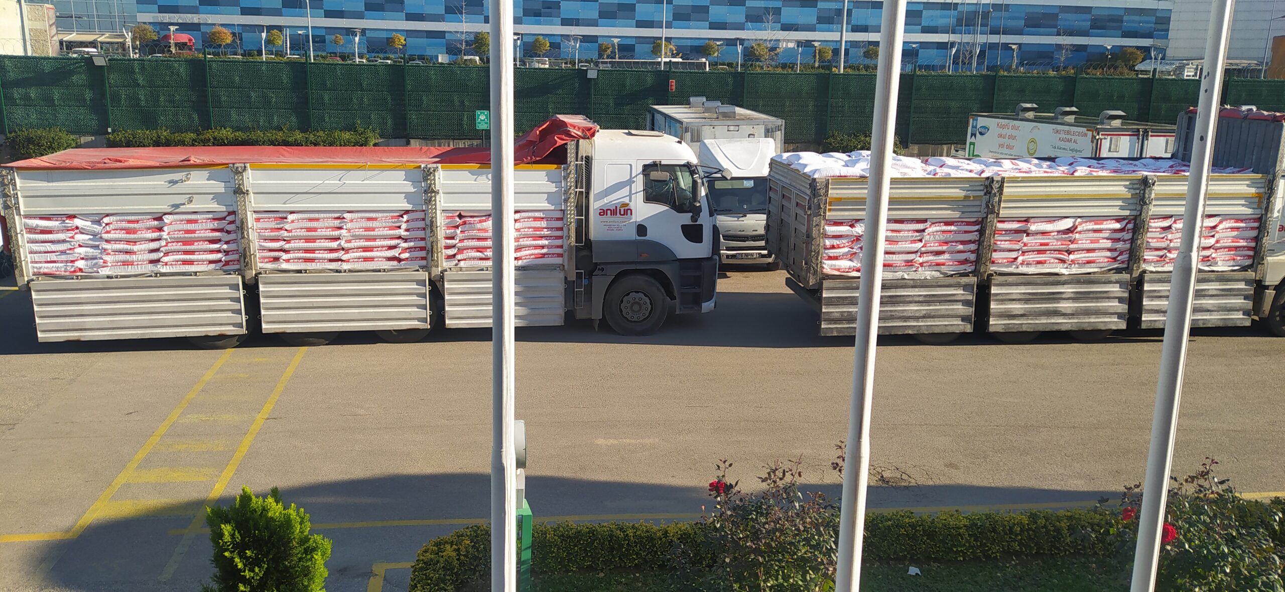 BESAŞ Genel Müdürü Hakkı Gülşen ile sohbetimiz sırasında, fabrika önüne 2 un kamyonu yanaştı.