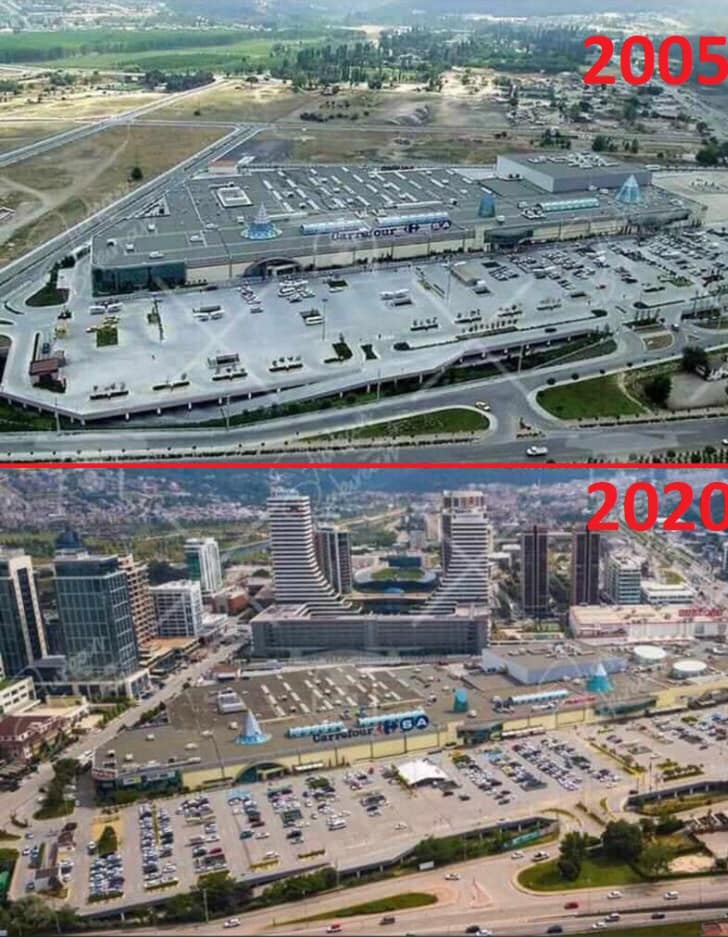 Şahin, Bursa’nın Manhattan’ı olarak nitelendirieln Nilüfer’deki bölgenin, 2005 ve 2020 yıllarında çekilmiş fotoğrafını göndererek isim vermeden Mustafa Bozbey’i eleştiriyor.