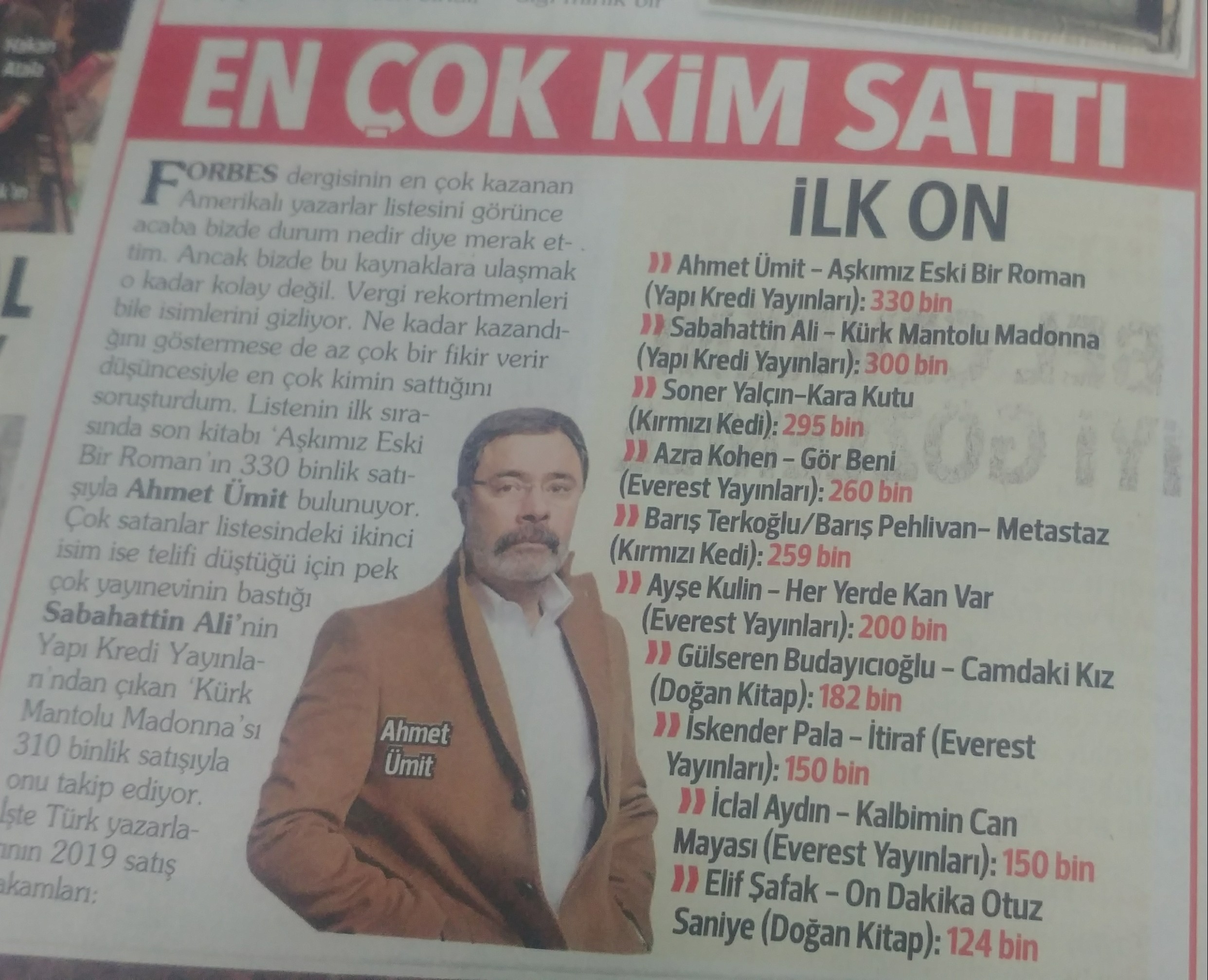 Hürriyet’ten İhsan Yılmaz, 2019’da Türkiye’de en çok satan 10 kitabı yazmış.